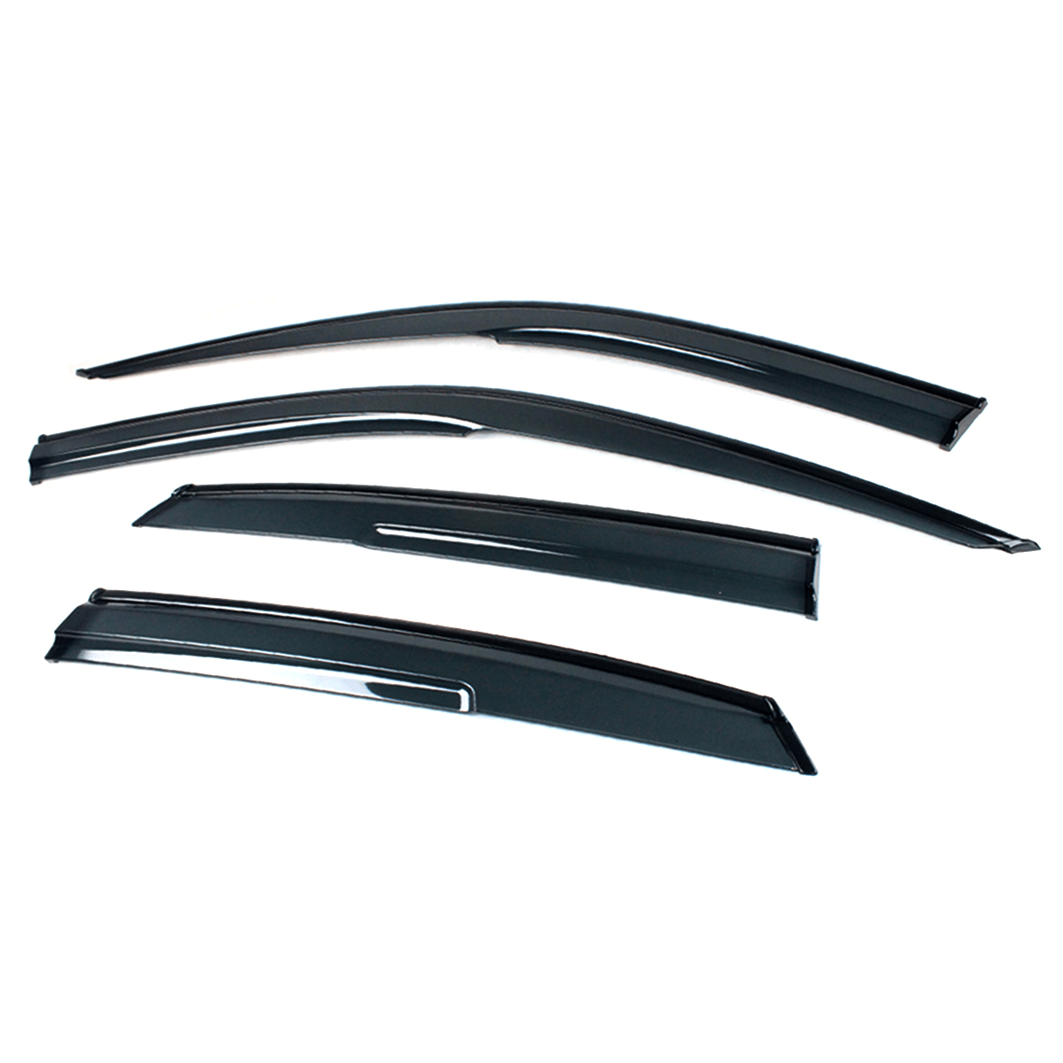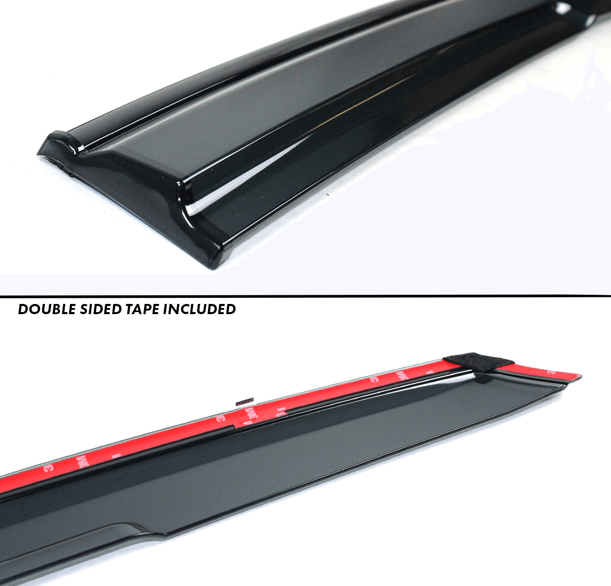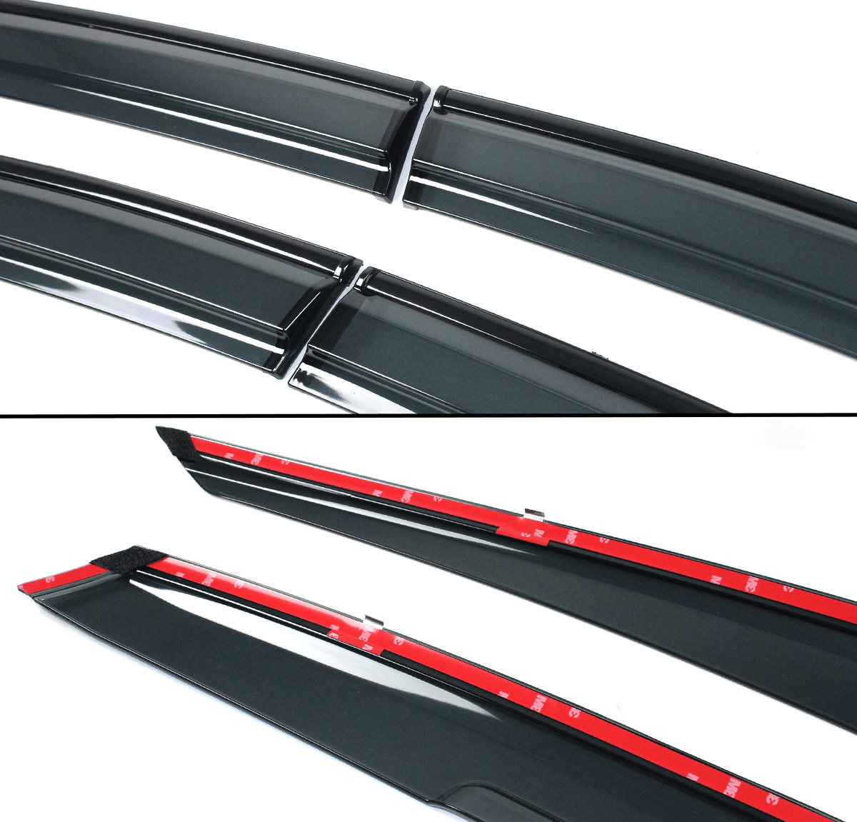 - Includes: 4 pieces (2 left and 2 Right) Glossy Smoke Window Visors with adhesive tape.