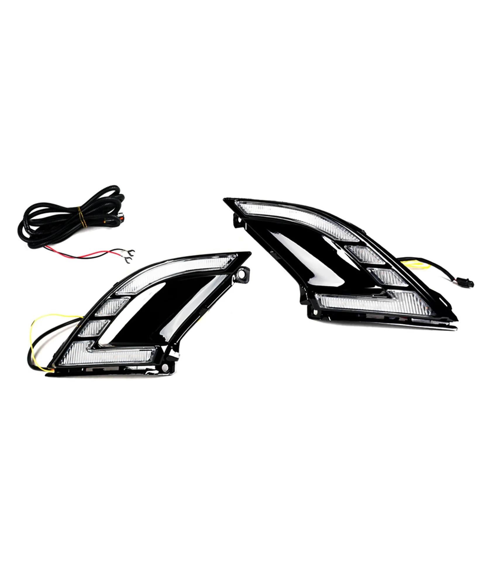 - Includes: One pair of fog light covers with dual-color (white/amber) sequential LED DRL strips, dynamic start-up animation & wiring harness